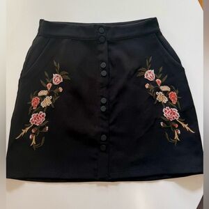 3/$25✨Vintage Black Floral Embroidered High-Waisted Mini Skirt – with pockets
