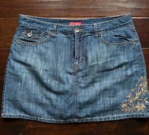 Chic and feminine high-waisted mini skirt featuring gorgeous floral embroidery. Perfect for fall season with black tights and black boots!