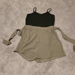 NWOT womans one piece skorts black high waist cami shorts romper Jumpsuit tank top with adjustable spaghetti straps, shorts are attached to shirt and they tie at the front.