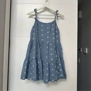 3/27$ Old Navy Girls Blue Butterfly Print Chambray Tiered Dress size XL(14-16)