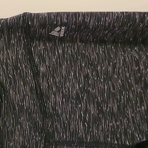 Black with grey patterned set of RBX brand crop athletic leggings. Very soft material. Pocket in waistband.