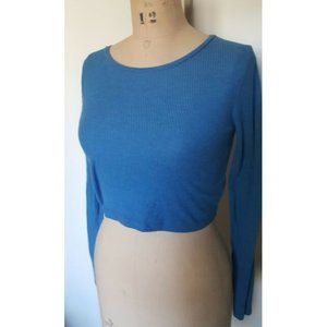 3/$28 TopShop blue ribbed long sleeve crop top shirt 6