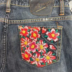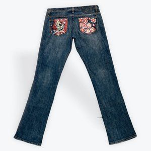 32x32 - Y2K Ed Hardy Low Rise Embroidered Straight Leg Jeans