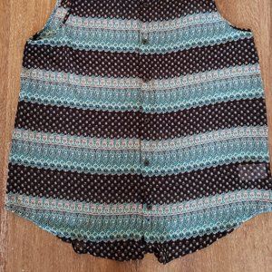 American Eagle Boho Blue Button Down Shell Top, Size M Bohemian Print Tank
