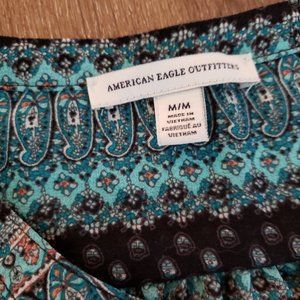 3/$30 American Eagle Boho Blue Button Down Shell Top, Size M Bohemian Print Tank