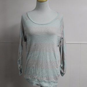 Size small. Length: 25.5", Pit to pit: 19", Sleeve length: 22", Arm width: 6". 52% Cotton, 24% Polyester, 24% Rayon. Small stain on sleeve