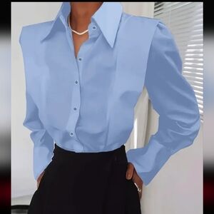 This elegant blue blouse is perfect for any occasion. Its sleek design offers a sophisticated look, making it a versatile addition to your wardrobe.