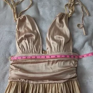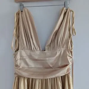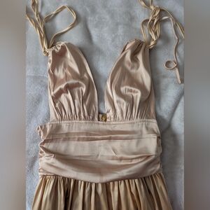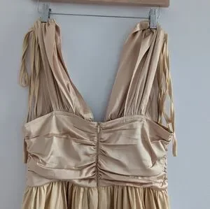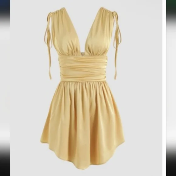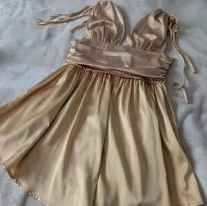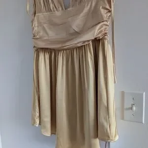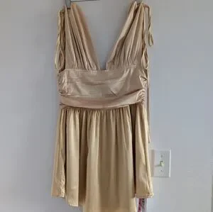 Gold mini dress with cinched straps and ruched body brand new with tags in perfect condition