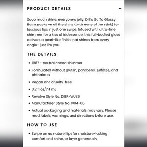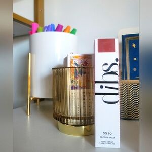 The "Go To Glossy Balm" from DIBS Beauty is a best-selling product. It's a mega-shiny, shimmery lip gloss that provides a soft, cushiony feel and a pearl-like finish. Perfect for a night out or everyday wear. Layers beautifully.
