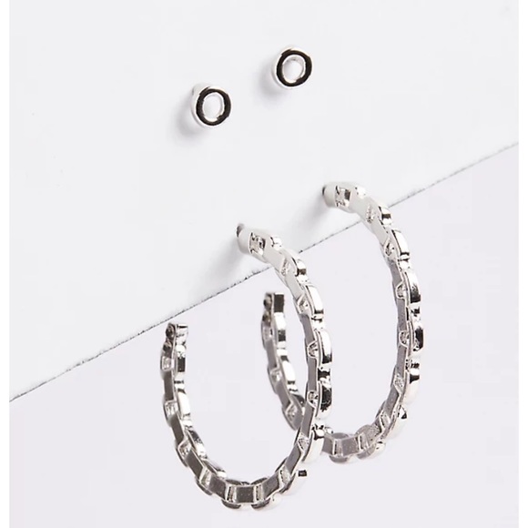 💜3/$30 Double Piercing Silver set of stud and Chain Hoops Torrid