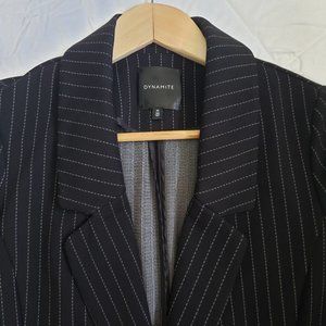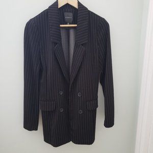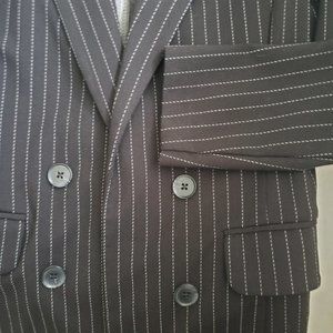 Pinstripe blazer. Longer length and double breasted. Perfect for a business casual look.