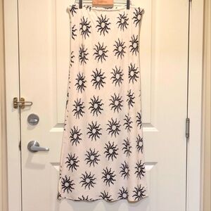 3/$30 EUC H&M M Linen Blend Off White Boho Maxi Skirt with Painted Sun Print