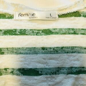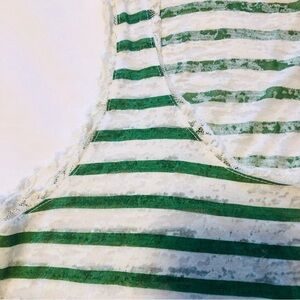 💜3/&30 Femme Large Green/White Stripe Burnout Tank Lace Trim