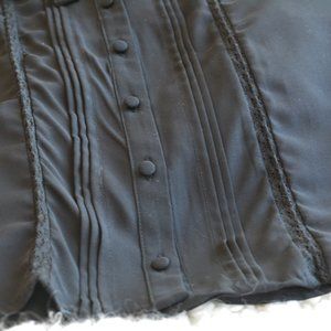 Worn once, basically brand new with no flaws. Size S and fits true to size. Button up front, bow tie at the neck, bell sleeves and lace detailing on the front. 100% polyester.