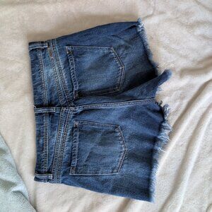Distress and raw hem all intentional. These shorts are in perfect condition.