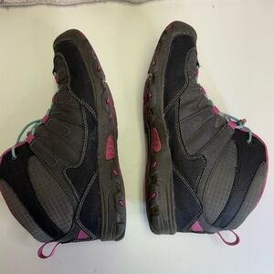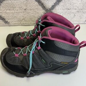 3/$30 Keen Youth 6 Hiking Boots Pink Black With Adjustable Cinch Lock Laces