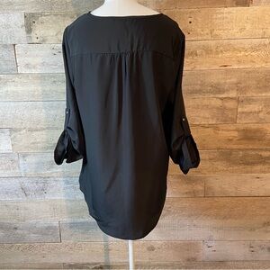 🛍️3/$30 Larry Levine women’s black billowy roll tab sleeve blouse size medium