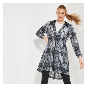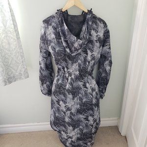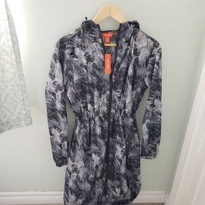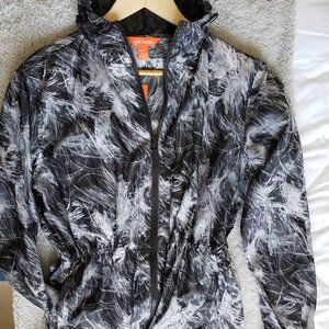 Stay dry polyester fabric rain jacket. Very thing, and has drawstrings to cinch to your size. Brand new with tags.