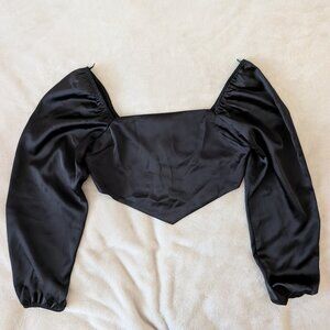 Puffy sleeve, satin crop top with back zip closure. In great condition, no rips or stains.