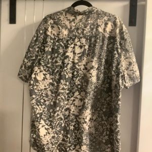 Beautiful cotton printed shirt, short sleeve, breast pocket. The floral pattern is muted as they have purposely used the wrong side of the fabric on the outside and the brighter is on the inside. NOT FADED Great with jeans, dress shorts for a classy look.