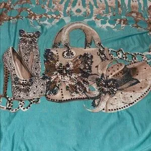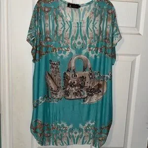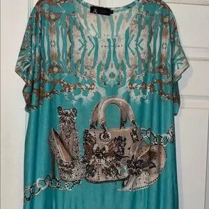 3/$30 Model France Turquoise Rhinestone Top
