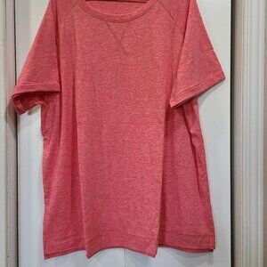 NWOT Pink shirt with hemmed sleeves/ the end of the sleeves are folded over. Shirt has some stretch to it, the sides at the bottom have a small 5 1/2" split on the seams.
