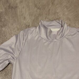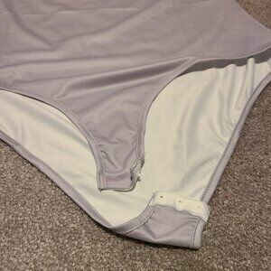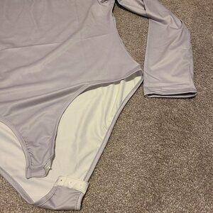 NWOT Supet soft and stretchy Light grey/ silver Long Sleeve bodysuit with turtleneck neck and 3 snaps button closure.