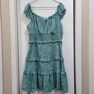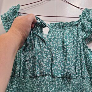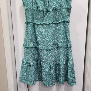 NWOT Womens Summer Sexy Sweetheart Collar Printed Ruffle Mini Dress, floral print, ties up at the front , zipper on right side - does not go all the way to the top.