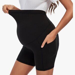 NWT MAZUSPORTS Black Maternity Yoga Shorts Over The Belly Active Comfy Biker Workout Running Athletic Shorts Side Pockets