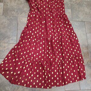 NWT dark red (looks brighter red in pic), dress is more burgundy red color. Had gold color design (ovals on dress).