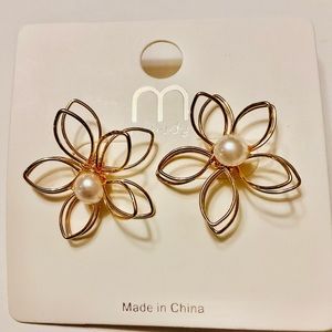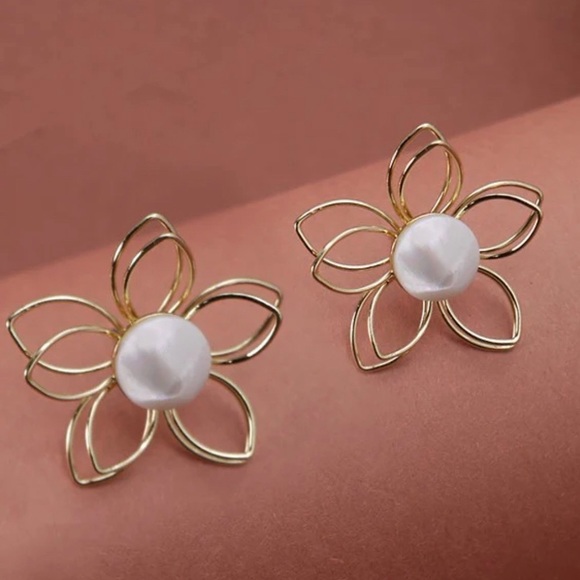 💜3/$30 Pearl 3D Gold Wire Flower Stud Earrings