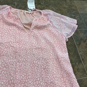 NWT Stylish and comfortable pink patterned top for women, it ties up at top front top. Shirt has a layer underneath. Perfect for casual outings or a day at the office. Ptp 18 1/2” Length 25” Polyester and spandex Aug 2025
