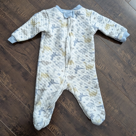 Quilted dinosaur print footie sleeper with zipper closure from Chickpea in size 3-6 months.