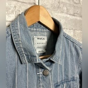 3/$30 _ RVCA | Pause It Striped Denim Jacket washed stripe blue raw hem small