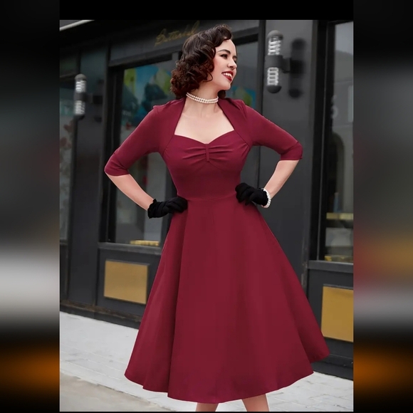 Step out in sophisticated style with this retro burgundy A-line dress. Perfect for any occasion, this dress features a flattering fit and a rich burgandy that stands out. Ideal for adding a touch of class - and sass - to your wardrobe.