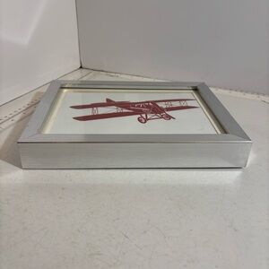 🛍️3/$30 Silver photo frame with red biplane on a white matte background