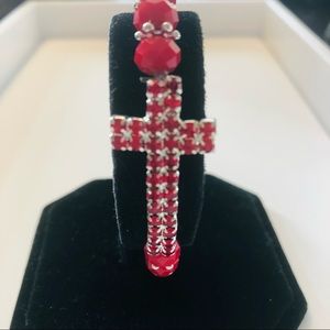 💜3/$30 Stretch Red Beaded Bracelet with Crystal Cross