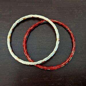 3/$30 Stunning 2.75" Vintage Cloisonne Red and White Floral Bangle Bracelet Set