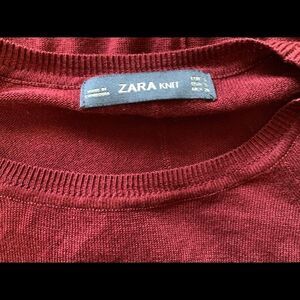 Zara knit long sleeve light weight burgundy sweater. Has slits on the sides . Excellent used condition. Fabric tab has been removed.