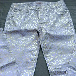Super adorable jeggings that will stand out anywhere. They’re a lilac purple with super cute cheetah print. In excellent condition and ready to wear.