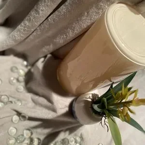 I have a very versatile neutral vase that is glass. It has no damages and is perfect for different things in your home. It is originally a vase but can be used for a centre piece with something other than flowers, great for big candles, and also can be used to hold utensils or cookware!
