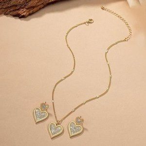3/$35 14K Gold Plated Jewelry Set Heart Necklace Drop Earrings Cubic Zirconia