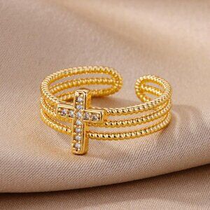 #GoldRing #CrossJewelry #ChristianRing #FaithJewelry #DaintyRing #AdjustableRing #RhinestoneRing #ReligiousJewelry #WomensAccessories #MinimalistJewelry #PoshFinds