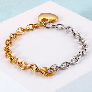 3/$35 18K Gold Plated & Silver Heart Charm Bracelet Two Tone Chain Link Jewelry