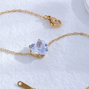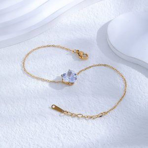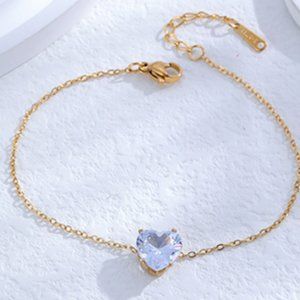 24K Gold Plated Clear Heart Charm Pendant Chain Bracelet Cubic Zirconia CZ Stainless Steel