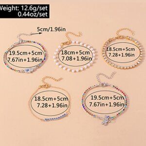3/$35 5-Piece Charm Bracelet Set Set Evil Eye Dragonfly Pearl Rhinestone Chains