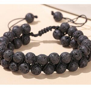 3/$35 Black Lava Rock Beaded Bracelet Adjustable Healing Energy Stone Unisex