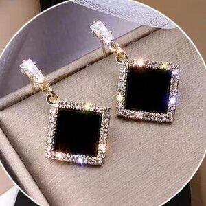 3/$35 Black Rhombus Drop Dangle Gold Tone Earrings Rhinestone Diamond Women