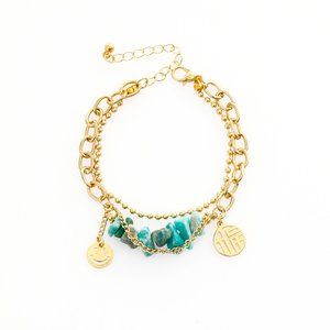 3/$35 Boho Turquoise Stones Charm Bracelet Gold Chain Layered Stainless Steel