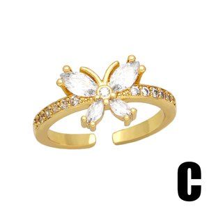 3/$35 Butterfly 18K Gold Plated Copper Open Ring Cubic Zirconia CZ Diamond